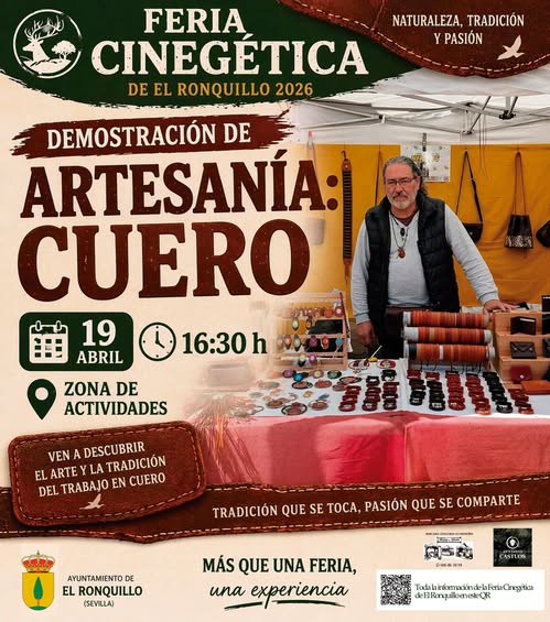 En un mundo cada vez m谩s marcado por la producci贸n en serie, la Feria Cineg茅tica de El Ronquillo apuesta tambi茅n por poner en valor los oficios tradicionales. El pr贸ximo domingo 19 de abril a las 16:30 horas, la zona de actividades acoger谩 una demostraci贸n de artesan铆a en cuero, una oportunidad para acercarse de primera mano a un trabajo que combina t茅cnica, paciencia y creatividad.