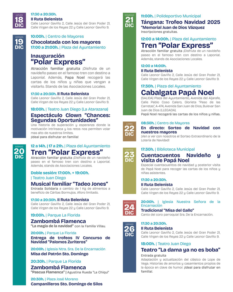 El JUEVES 4 se da el pistoletazo de salida con la inauguración del alumbrado navideño y hasta el 5 de enero, con la Cabalgata de Reyes Magos, hay infinidad de actividades para disfrutar de la magia de la Navidad
