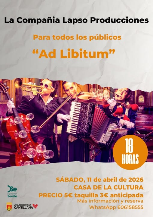 Recomendación para la Retirada de Entradas** Con el objetivo de mejorar su experiencia y garantizar un evento más ágil y cómodo, el Ayuntamiento de Cantillana recomienda la retirada de entradas miércoles y viernes en el horario de 10:00 a 14:00 horas en casa de la cultura. Esta medida busca evitar aglomeraciones, permitiéndonos realizar una mejor acomodación en las butacas y, de esta manera, minimizar los retrasos durante la representación.