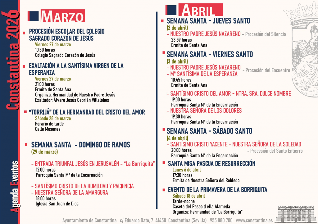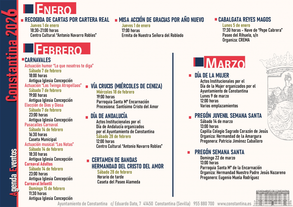 Navegación de entradas Programación del Carnaval de Constantina 2026 CONVENIO DE COLABORACIÓN ENTRE ADECCONS Y EL AYUNTAMIENTO DE CONSTANTINA PARA TAREAS TURÍSTICAS