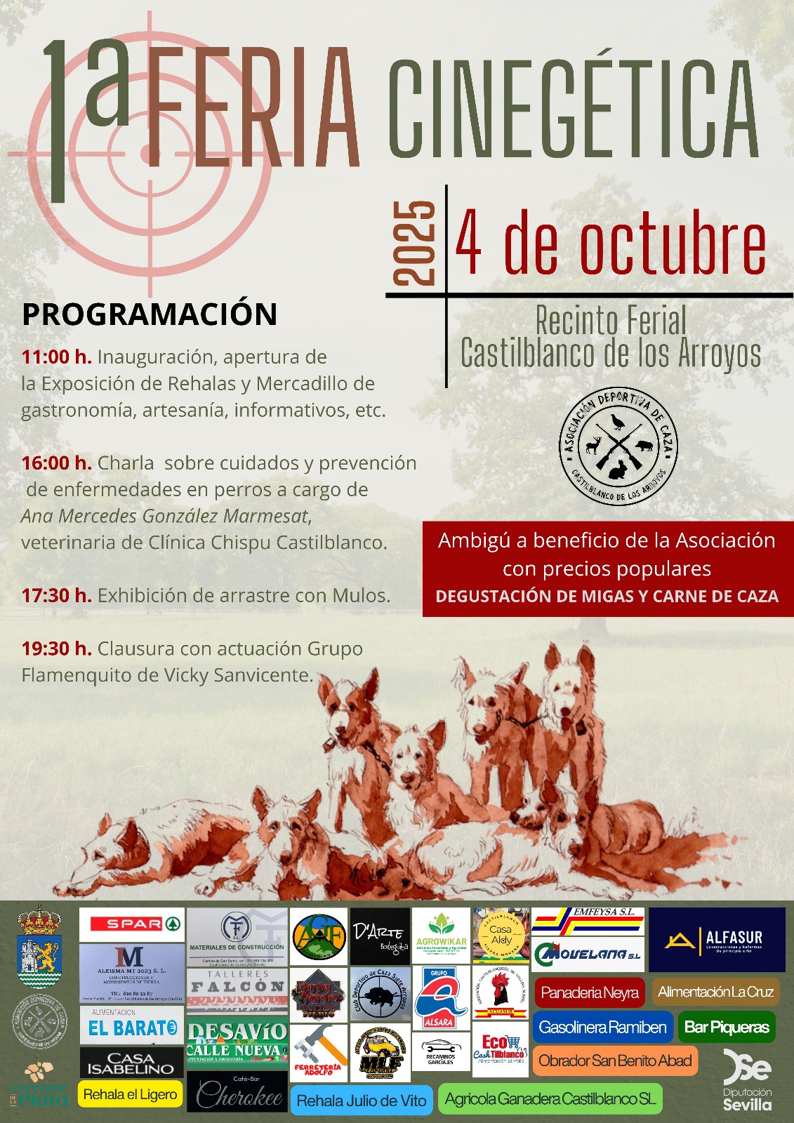 El próximo sábado 4 de octubre, el Recinto Ferial acogerá la I Feria Cinegética. Una jornada dedicada al mundo de la caza, organizada por la Asociación Deportiva de Caza con la colaboración del Ayuntamiento y la Diputación de Sevilla.