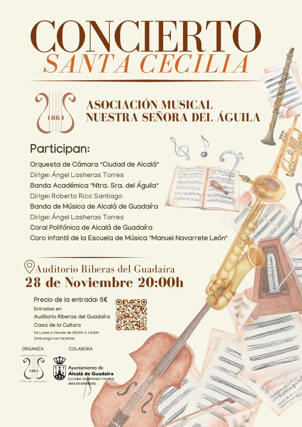La Banda de Alcalá, Asociación Musical Nuestra Señora del Águila, ofrecerá su tradicional concierto para conmemorar a Santa Cecilia, Patrona de la Música.