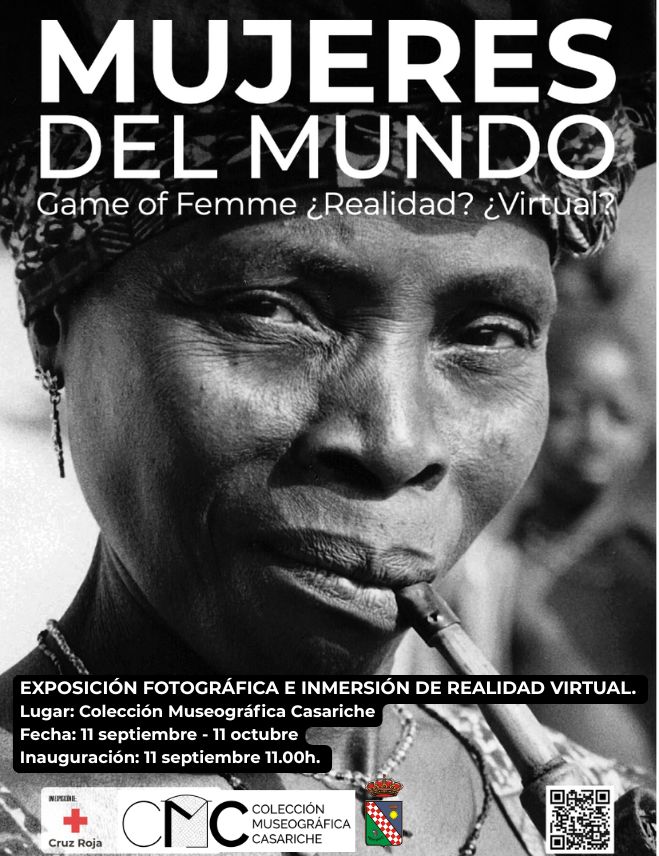 La Colección Museográfica de Casariche se prepara para acoger una exposición única. Bajo el nombre de ‘MUJERES DEL MUNDO: Game of Femme ¿Realidad? ¿Virtual?’, esta propuesta artística y social ofrece un recorrido visual e inmersivo que pone el foco en las realidades que enfrentan las mujeres en diferentes partes del mundo. A través de fotografías impactantes y una experiencia en realidad virtual, las personas visitantes podrán acercarse a historias de lucha, superación y reivindicación.