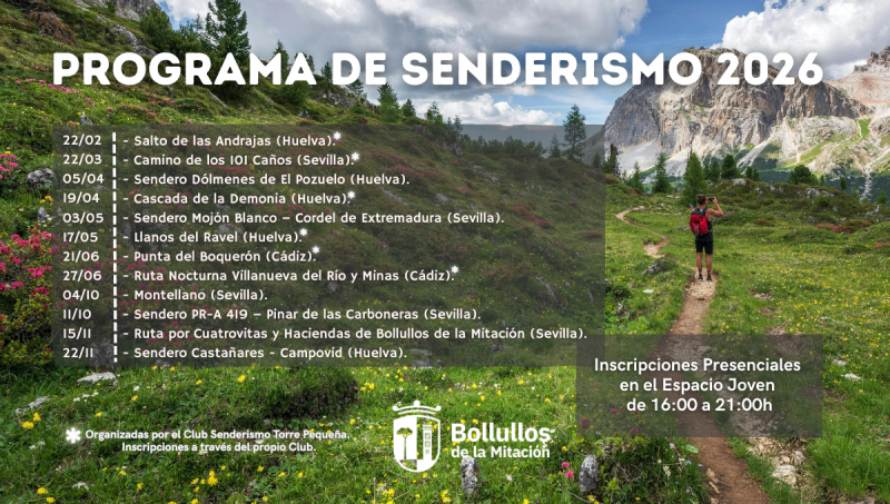 La Delegación de Deportes del Ayuntamiento de Bollullos de la Mitación va a poner en marcha un programa de rutas senderistas para este año 2026, con el objetivo de fomentar la práctica deportiva en contacto con la naturaleza, promoviendo el ocio saludable y el bienestar entre la ciudadanía