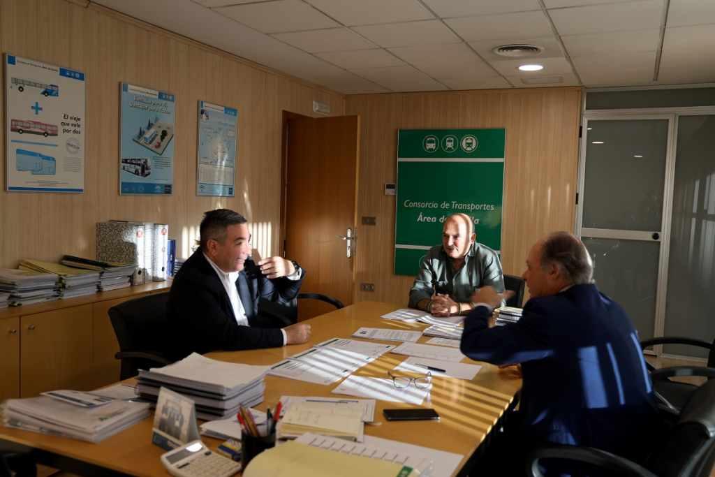 El delegado de Movilidad, José Manuel Romero Campos, se ha reunido con el director gerente del Consorcio de Transporte Metropolitano del Área de Sevilla, Juan Carlos García Argenté, y delegado territorial de Fomento, Articulación del Territorio y Vivienda en Sevilla, Francisco de Paula José Juárez Martín. Los objetivos de dicha reunión de trabajo son mejorar la calidad del transporte público interurbano y ofrecer a la ciudadanía un servicio más eficiente, accesible y adaptado a sus necesidades