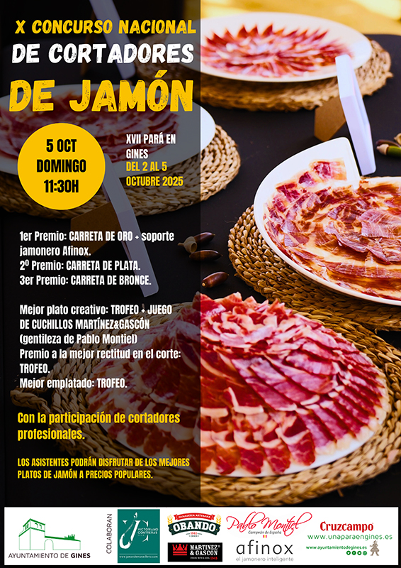 El arte de cortar bien un buen jamón volverá a tener premio dentro de Una Pará en Gines 2025, que desarrollará su decimoséptima edición del 2 al 5 de octubre.