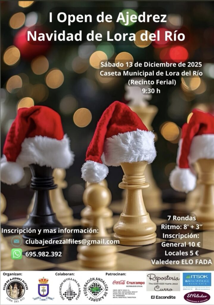 I Open de Ajedrez ‘Navidad de Lora del Río’ se celebrará el Sábado 13 de diciembre en la Caseta Municipal de Lora del Río.
