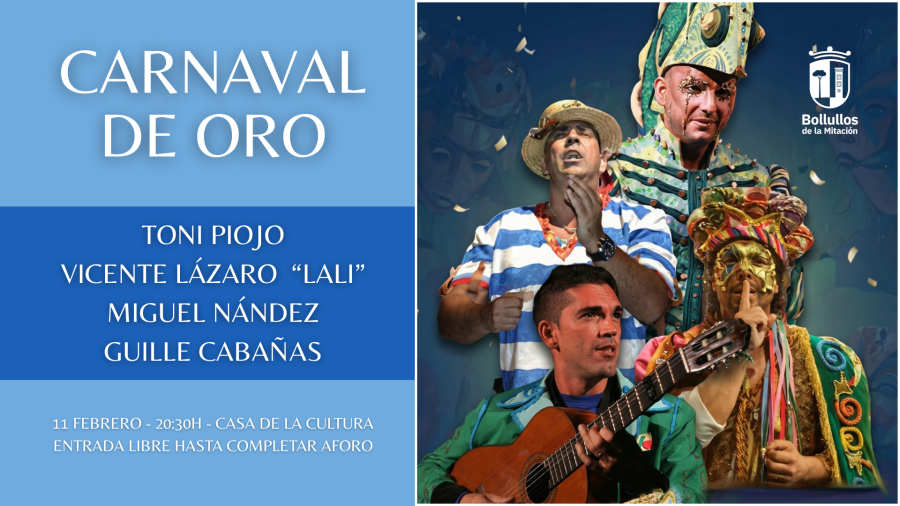 Carnaval de Oro reúne las prestigiosas voces de Toni ‘Piojo’, Miguel Nández, Vicente Lázaro ‘Lali’ y la guitarra de Guillermo Cabañas, para ofrecer un recorrido histórico por las mejores letras de las comparsas y chirigotas más importantes del carnaval contemporáneo, incluyendo las últimas agrupaciones de Antonio Martínez Ares, en las que han participado en algunos casos.