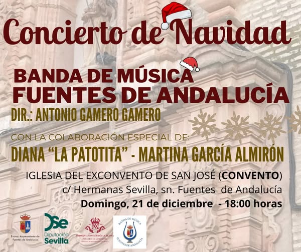 La Banda de Música Fuentes de Andalucía, bajo la dirección de Antonio Gamero Gamero, ofrecerá una tarde muy especial llena de música y espíritu navideño.