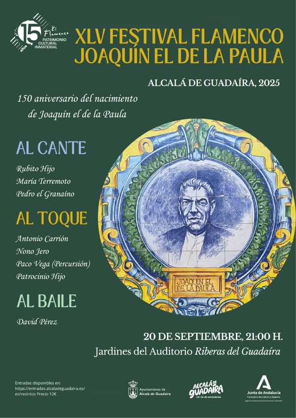 El Festival “Joaquín el de la Paula” 2025 se celebrará el 20 de septiembre, y contará al cante con María Terremoto, Pedro el Granaíno y Rubito Hijo. Al toque, Antonio Carrión, Nono Reyes, Patrocinio Hijo y Paco Vega. Al baile, David Pérez.