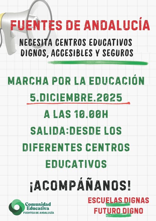En Fuentes de Andalucía se ha convocado una marcha por la educación para el próximo 5 de diciembre a las 10:00 h.