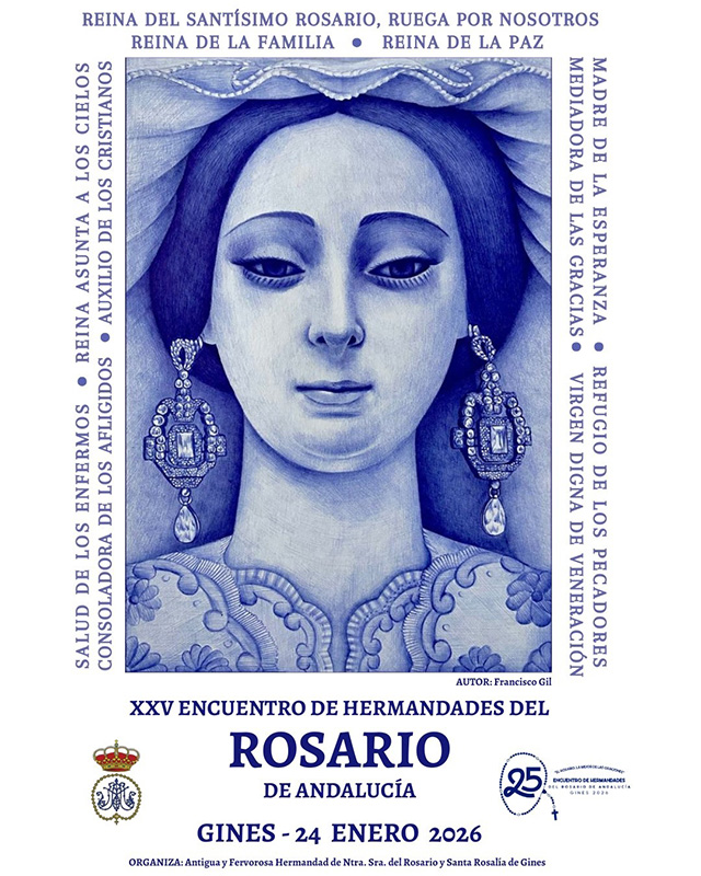 Gines será sede el próximo sábado, 24 de enero, del XXV Encuentro de Hermandades del Rosario de Andalucía, una cita de carácter regional que reunirá en la localidad a más de 250 congresistas de más de 40 hermandades procedentes de distintos puntos de la comunidad, con representación de siete de las ocho provincias andaluzas.