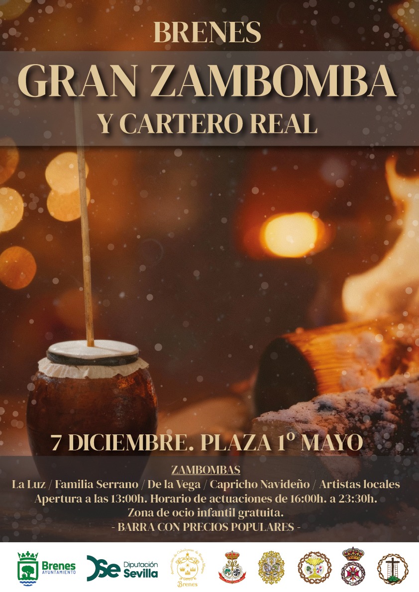 El Ayuntamiento de Brenes, con la colaboración de las Hermandades y la Asociación de Cabalgatas de Brenes, organizará el próximo 7 de diciembre una GRAN ZAMBOMBA y el Festival ‘Cantando a la Navidad’ en la Plaza 1º de Mayo.