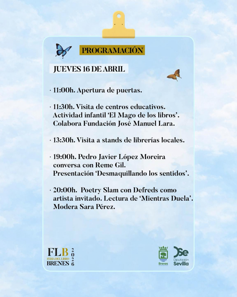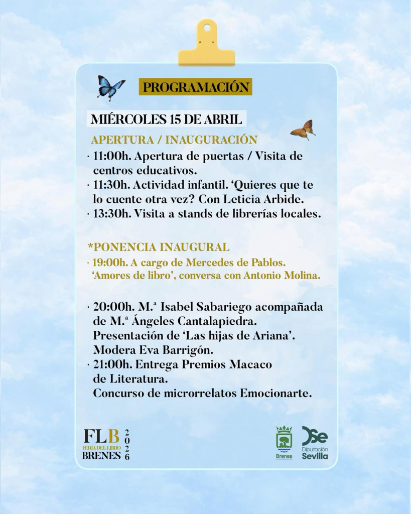 El Ayuntamiento de Brenes ha presentado la nueva edición de la Feria del Libro, que se celebrará los días 15, 16 y 17 de abril de 2026 en la explanada frente al CLAMA, en el Paseo José Fernández Vega.