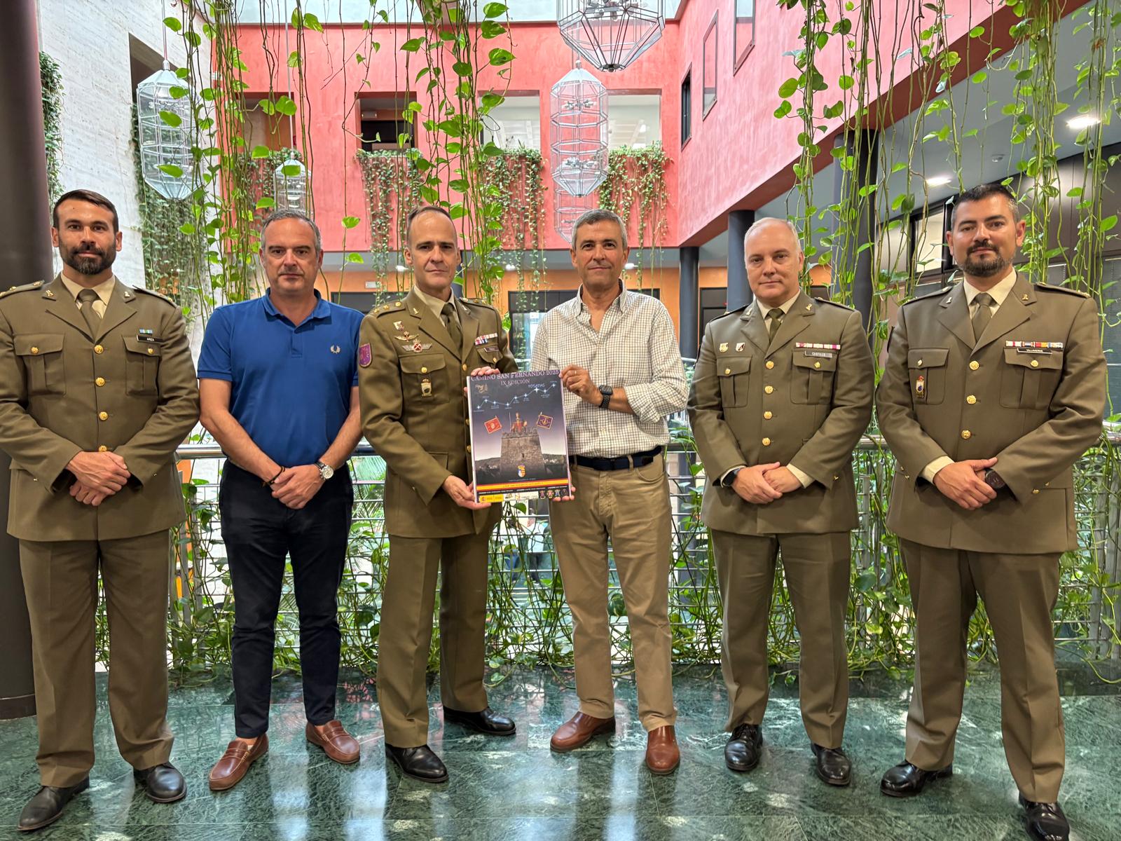 El Teniente de Alcalde Delegado de Movilidad del Ayuntamiento de Dos Hermanas, Antonio Morán Sánchez, recibió la pasada semana de manos del jefe del Batallón de Transmisiones III/22 del Ejército de Tierra, Vicente Rodríguez Polvillo, junto a otros mandos militares, el cartel anunciador de la ‘IX Edición del Camino de San Fernando’, que con el lema, ¡¡Que San Fernando nos guíe!!, busca no solo honrar a su patrón, sino también acercar el legado histórico y militar a las comunidades locales.