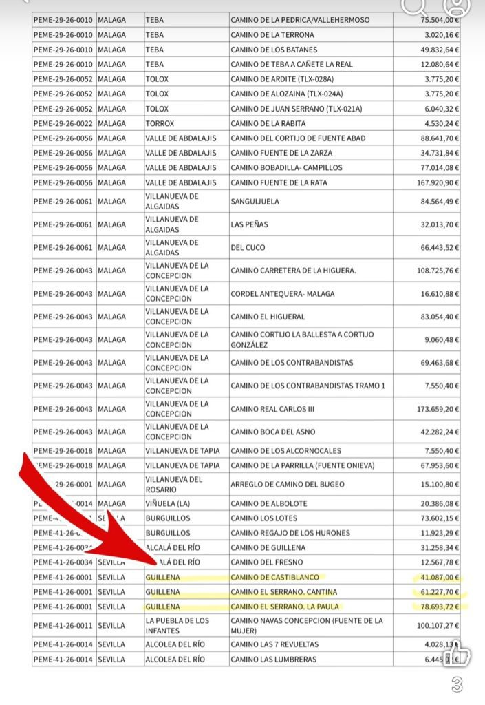 En el último pleno ordinario celebrado por la Corporación municipal el pasado 26 de marzo se aprobó por unanimidad una propuesta con la solicitud del Ayuntamiento de Guillena para que se incluyera en el Plan de Caminos Rurales de la Junta de Andalucía el arreglo de dos caminos del municipio de Guillena. En concreto, un tramo del camino de Castilblanco y dos tramos del Camino de El Serrano.