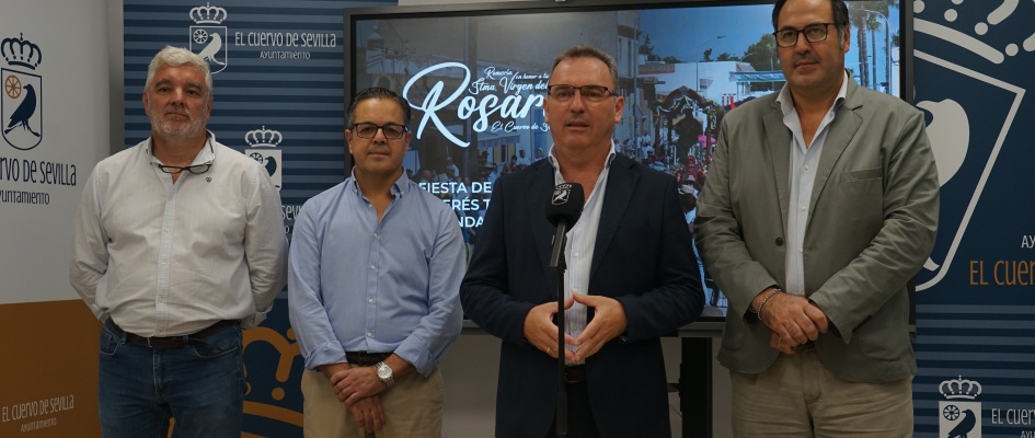 Tras conocerse por parte de la Junta de Andalucía la declaración de la Romería en honor a la Santísima Virgen del Rosario como Fiesta de Interés Turístico de Andalucía, el alcalde de El Cuervo de Sevilla, José Manuel Oliva, acompañado del delegado de Fiestas de la localidad, Silvestre Castells, y miembros de la Hermandad del Rosario; ha comparecido para agradecer a todo el pueblo el esfuerzo realizado durante todos estos años en los que se ha venido trabajando para culminar en este deseo cumplido.