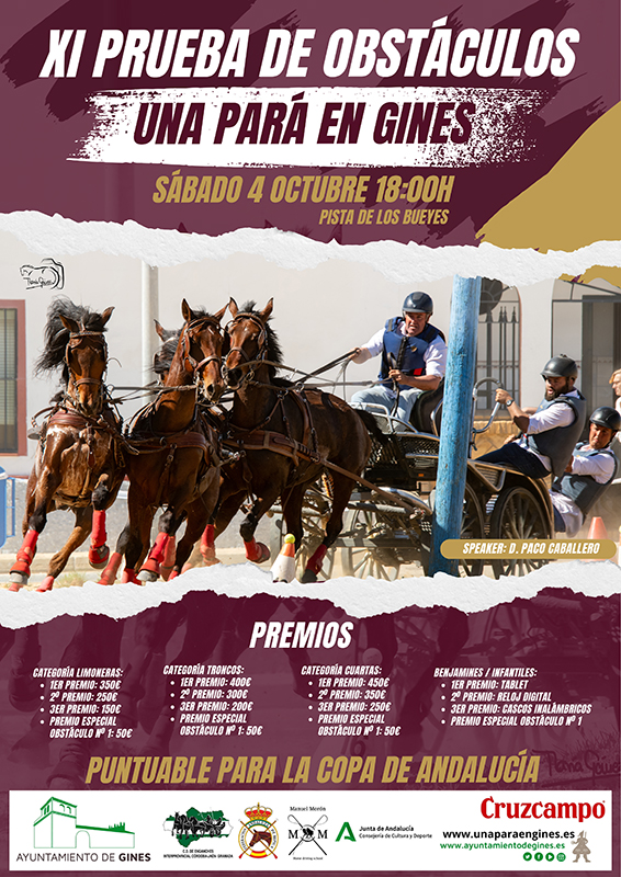 La velocidad y la emoción volverán a ser protagonistas en La Pará con la décimo primera edición de la Prueba de Obstáculos, puntuable para la Copa de Andalucía de esta modalidad y considerada una de las competiciones más destacadas cada año del evento que organiza el Ayuntamiento de Gines.