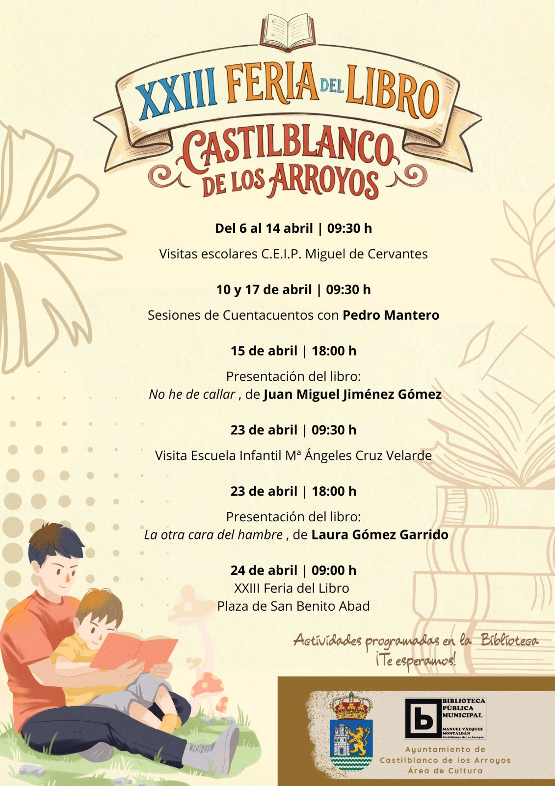 Entre las actividades previas, el alumnado de Primaria e Infantil se encuentra realizando estas semanas visitas a la Biblioteca y habrá sesiones de cuentacuentos a cargo de Pedro Mantero los días 10 y 17 de abril.