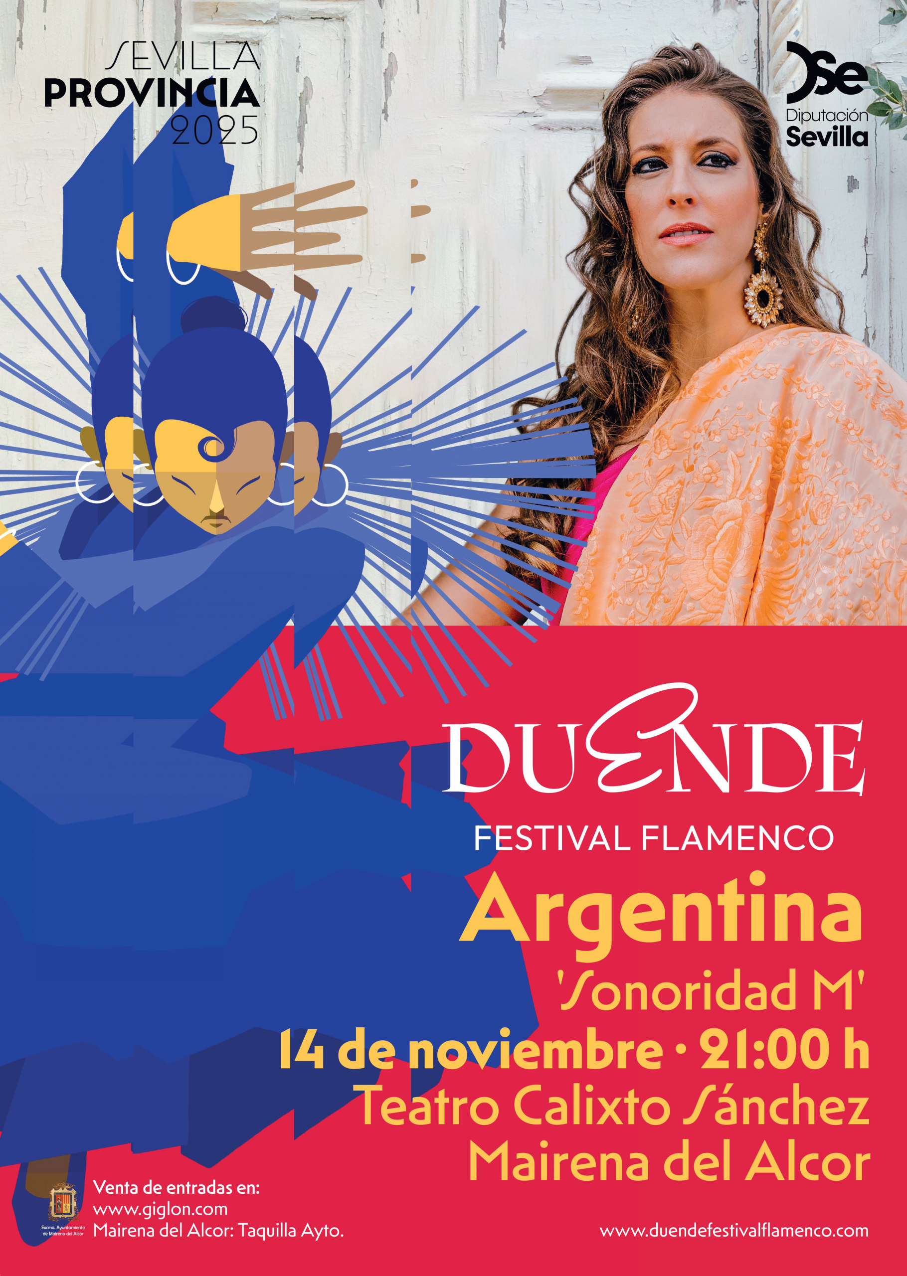 La cantaora Argentina presenta en Mairena del Alcor su espectáculo Sonoridad M (1842-2024), una propuesta que rinde homenaje a la mujer en el cante flamenco. Con su poderosa voz, sensibilidad y dominio de los estilos, la artista onubense recorre un siglo y medio de historia para rescatar, reinterpretar y poner en valor la huella femenina en el arte jondo.