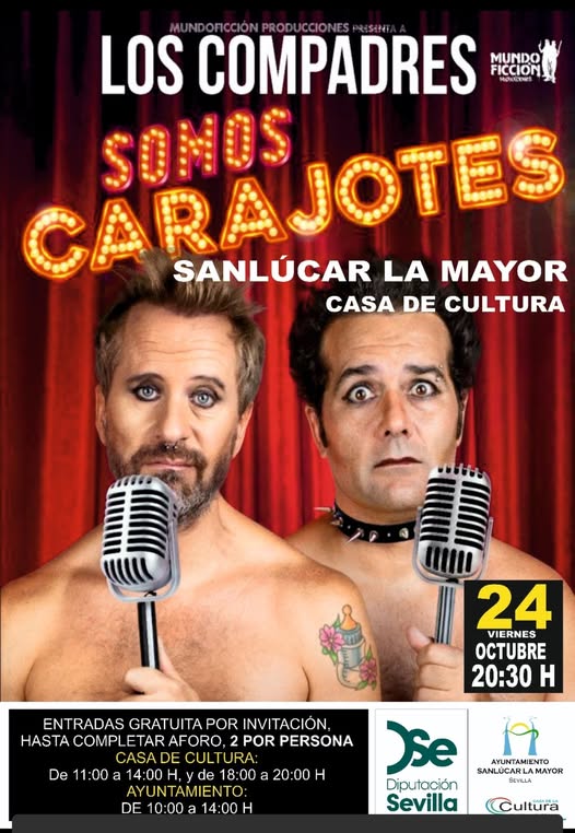 EL DIVERTIDO ESPECTÁCULO DE LOS COMPADRES, REPRESENTARÁN EN EL TEATRO DE LA CASA DE CULTURA DE SANLÚCAR LA MAYOR, «SOMOS CARAJOTES», EL VIERNES DÍAS 24, A LAS 20:30 H