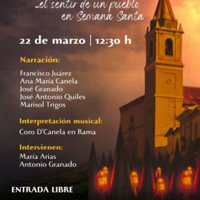 La Caseta Municipal “Rafael Gálvez Guijarro” acogerá el próximo 22 de marzo, a las 12:30 horas, el acto “Pasión y Cante. El sentir de un pueblo en Semana Santa”, un espectáculo que pondrá en valor la tradición cofrade de nuestro pueblo a través de la música, el cante y el relato.