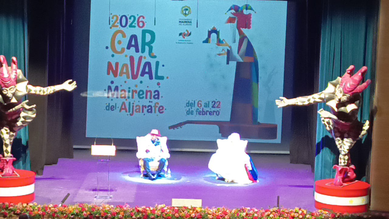 En el día de hoy ha tenido lugar el pregón de Carnaval 2026 de Mairena del Aljarfe que ha pronunciado Sergio Serón en las tablas del Teatro Villa de Mairena del Aljarafe.