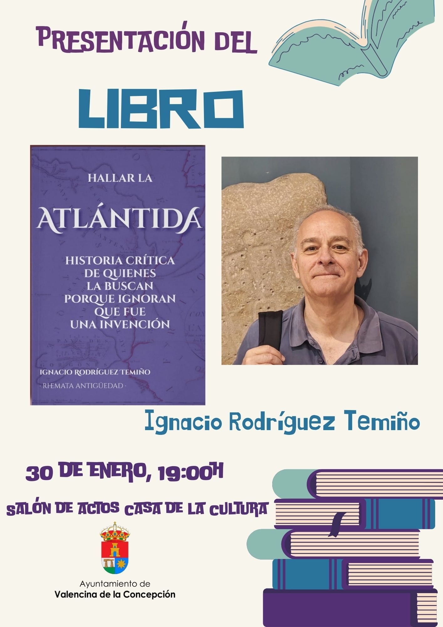 El próximo viernes 30 de enero a las 19:00 h. la Casa de la Cultura acoge la presentación de la obra «Hallar la Atlántida. Historia crítica de quienes la buscan porque ignoran que fue una invención» escrita por el Dr. Ignacio Rodríguez Temiño.