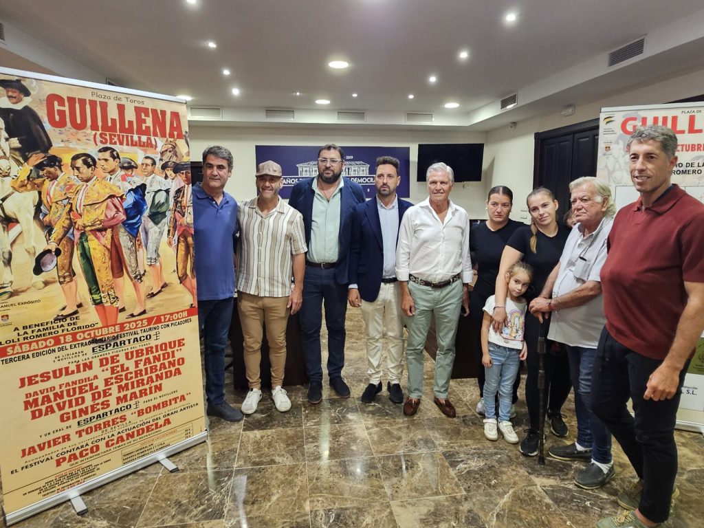 En la presentación estuvieron el alcalde de Guillena, Lorenzo Medina; el empresario local Manuel Expósito, promotor del acontecimiento taurino, que vuelve a contar con José Cutiño y Juan Antonio Ruíz Espartaco, como empresario y ganadero.