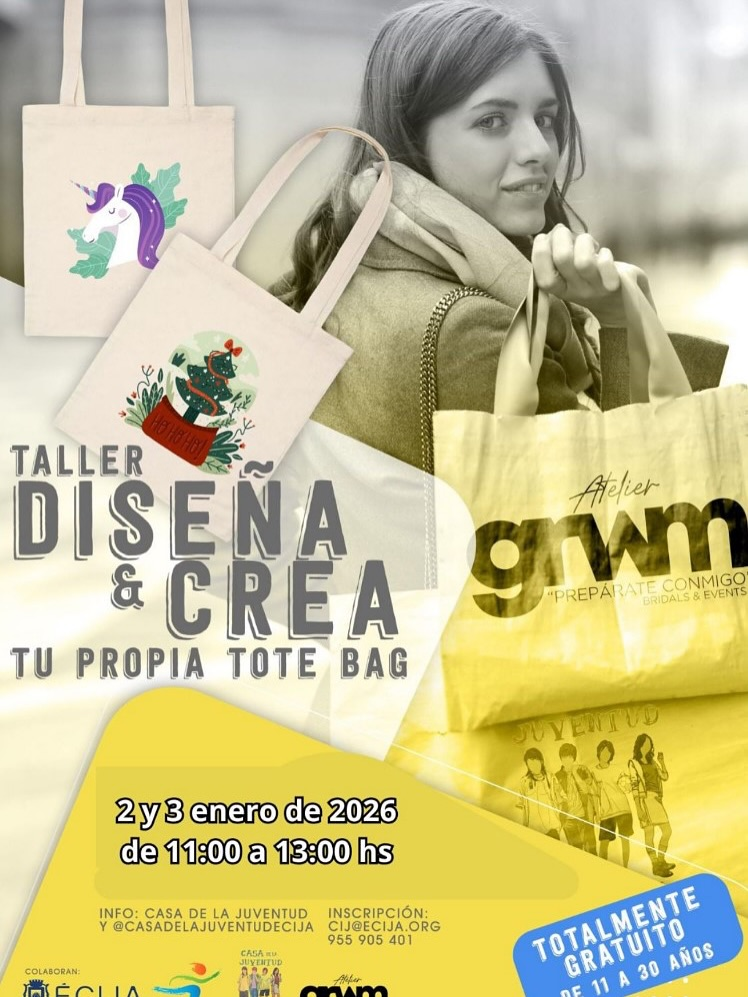 -Diseña y crea tu propia Tote Bag. 2 y 3 de enero de 11.00 a 13.00 h. Casa de la Juventud.