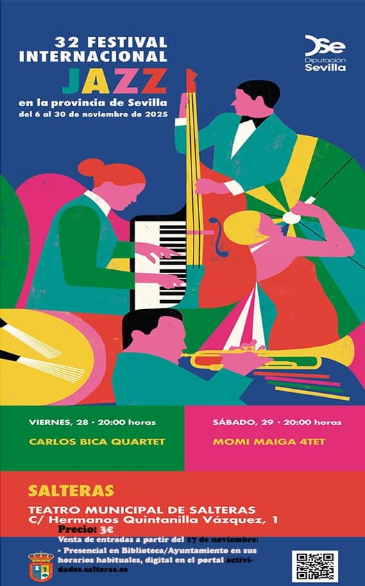 El Ayuntamiento de Salteras se suma un año más al Festival Internacional de Jazz de la Provincia , una cita imprescindible de la Diputación de Sevilla que celebra su 32ª edición y que sigue acercando la mejor música a nuestros municipios.