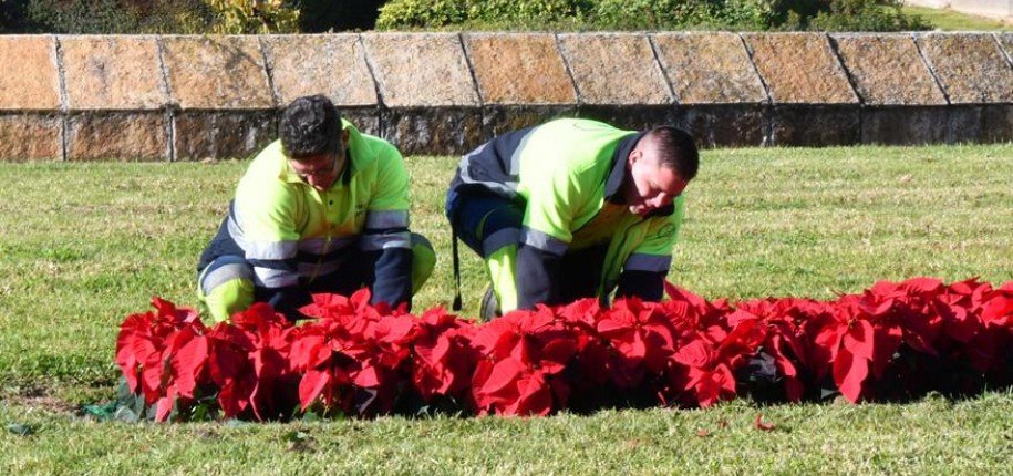 El Ayuntamiento de Tomares ha comenzado este miércoles, 3 de diciembre, la plantación en la Glorieta Gerente Carlos Moreno (Rotonda del Agua) de las primeras 450 flores de pascua (Euphorbia pulcherrima) de las casi un millar que llenarán de vida, junto con el alumbrado navideño, las principales calles, plazas y avenidas del municipio en los próximos días.