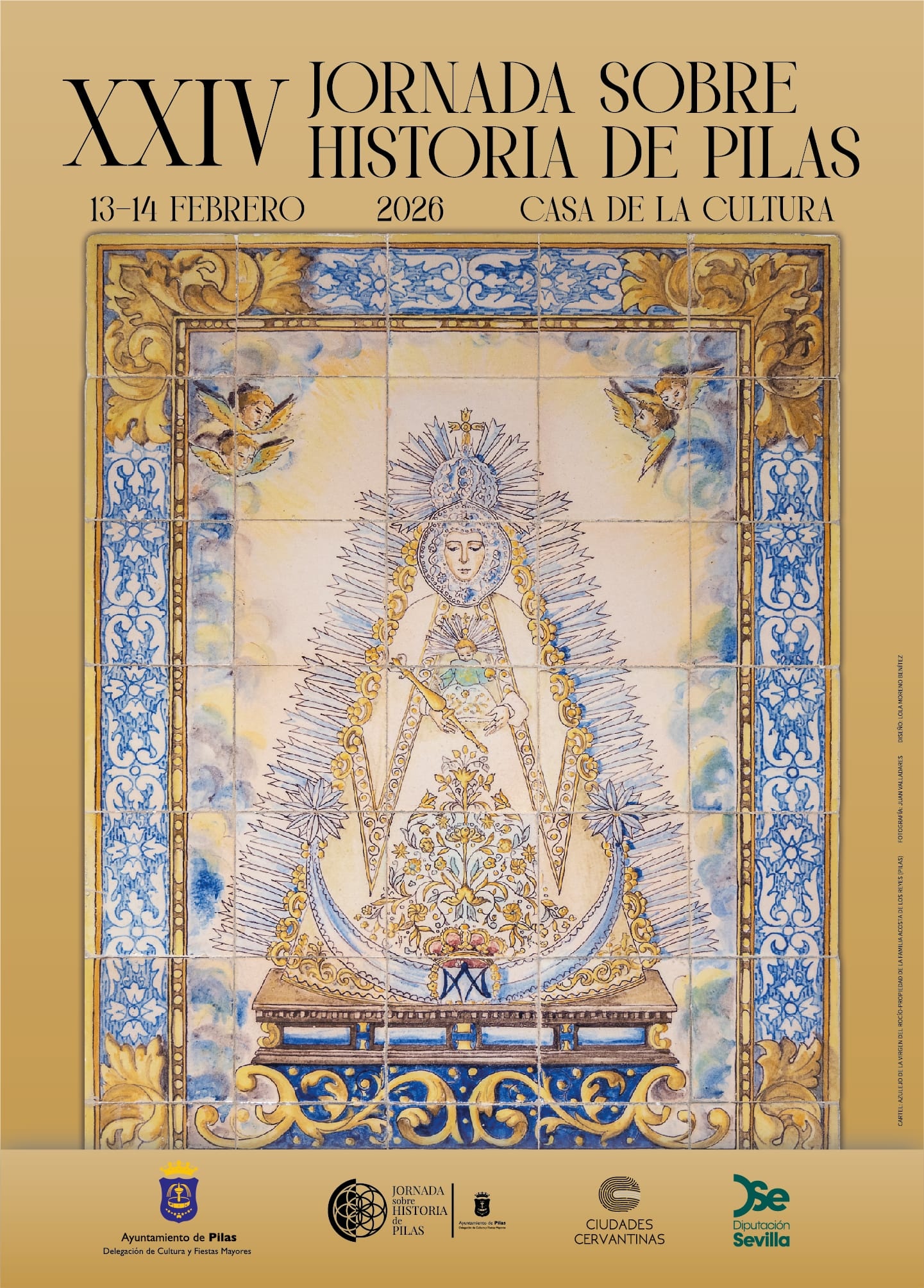 Hoy y mañana, la Casa de la Cultura de Pilas acogerá la vigésimo cuarta edición de la Jornada sobre Historia de Pilas, de la que volvemos a publicar su cartel oficial, diseñado sobre un retablo cerámico de la Virgen del Rocío, sin fecha ni autor, pero que es de tradición trianera y data, como mínimo, de principios del siglo XX, a tenor de la iconografía de la Virgen (anterior a la de la Coronación de 1919).
